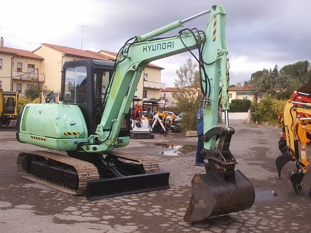 MINIESCAVATORE USATO HYUNDAI R55-3, peso 55 quintali, braccio lungo, benna scavo Sgancio Rapido, cingoli in ferro, Impianto idraulico ausiliare martello -pinza. Ottime condizioni