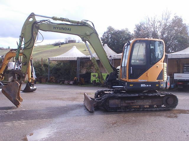 ESCAVATORE USATO HYUNDAI R80-9, peso 80 girosagoma quintali, braccio lungo, benna scavo, cingoli in fgomma buoni, Impianto idraulico ausiliare martello -pinza. Ottime condizioni