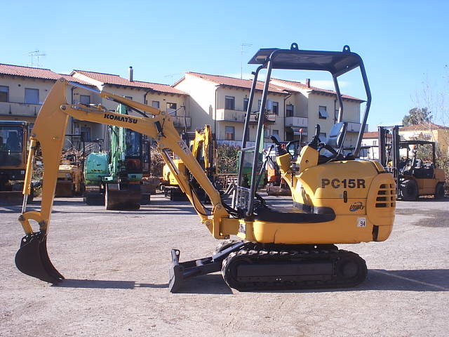 MINIESCAVATORE KOMATSU PC 15R, peso 15 quintali, con benna da scavo, impianto martello-pinza, cingoli in gomma, impianto martello.