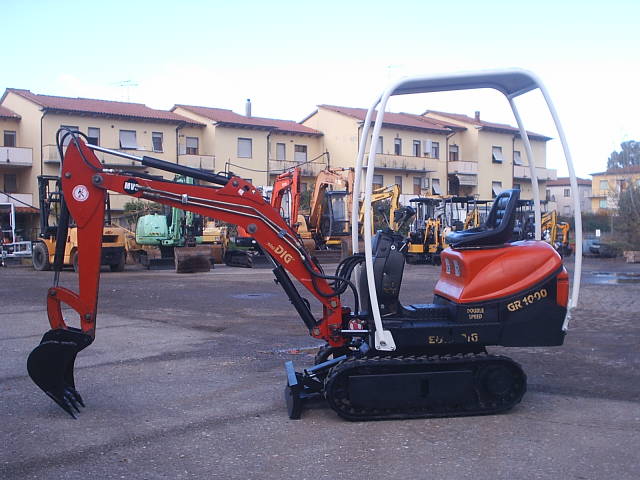 MINIESCAVATORE EUROCODIG GR1000, peso 10 quintali, ore 1850, carro allargabile con benna da scavo, impianto martello-pinza, cingoli in gomma ottimi, impianto martello.