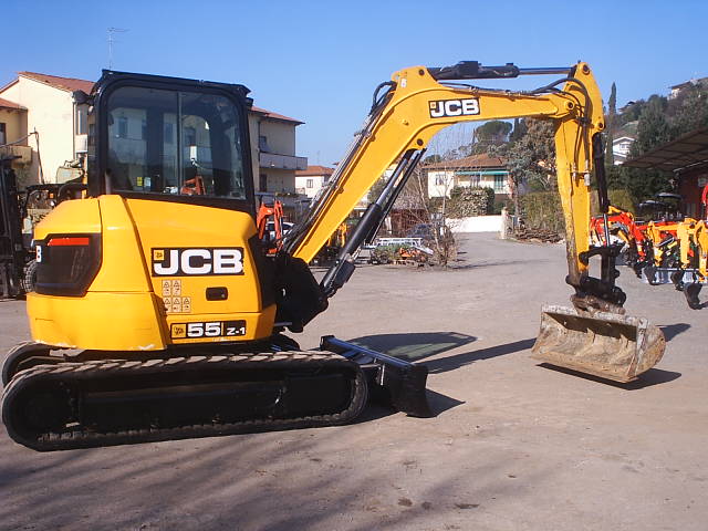 MINIESCAVATORE USATO JCB 55Z-1, peso 55 quintali GIROSAGOMA, ANNO 2016, ORE 2400, braccio lungo, 3 benne scavo sgancio rapido, cingoli in gomma buoni, doppia velocità, Valvole di blocco, Aria condizionata, Impianto idraulico ausiliare martello -pinza. Macchina in perfette condizioni. Certificato CE + Manuale uso e manutenzione