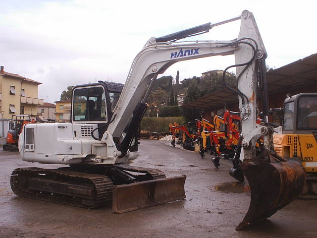 ESCAVATORE USATO HANIX H75c, 80 quintali, braccio lungo, 2 benne, cingoli in ferro Impianto idraulico ausiliare martello -pinza. Certificato CE + Manuale uso e manutenzione.